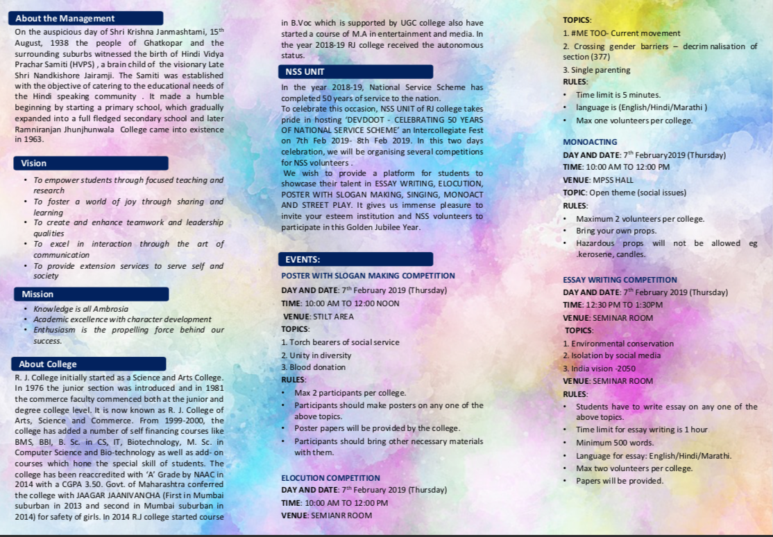 Devdoot- InterCollegiate Fest || RJC NSS || Celebrating 50 Years of NSS