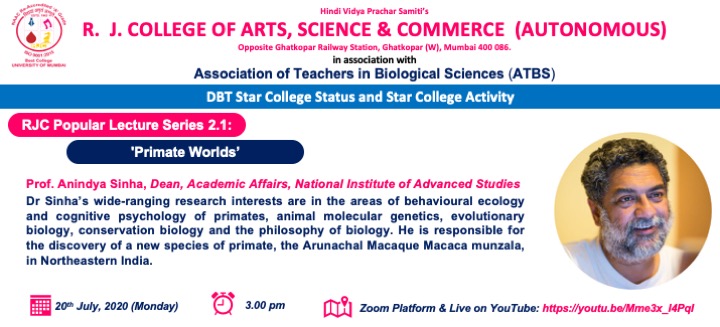 RJC Popular Lecture Series 2.1: ‘Primate Worlds’ by Prof. Anindya Sinha, Dean, Academic Affairs, National Institute of Advanced Studies